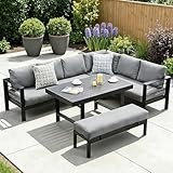 - Modernes Ecksofa-Set für 6-8 Personen: Dieses großzügige Ecksofa-Set aus Aluminium bietet Platz für 6-8 Personen und besteht aus einem stilvollen Ecksofa, einem praktischen Tisch und einer zusätzlichen Sitzbank. Perfekt für Garten, Terrasse oder Balkon – ideal für gesellige Stunden mit Familie und Freunden.