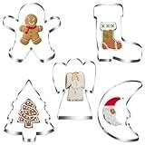 - ★【Lieferumfang】5 × Ausstecher Weihnachten (Muster: Lebkuchenmann, Weihnachtsbaum, Mond, Engel, Stiefel, Größe: 7-12cm)