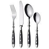 - Rustikales Tafelbesteck Set für 6 Personen: Hochwertiges Menübesteck aus Edelstahl 18/0 (Chromstahl) mit schwarzen Griffen für 6 Personen