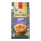 - Genieße die verführerische Komposition von cremigem JACOBS TYP Cappuccino, Milka-Schokoladengeschmack und feinem Nuss-Geschmack.