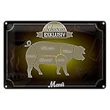 - Ideal für die Küche oder den Grillbereich, spricht dieses Schild besonders Fleischliebhaber und Grillmeister an. Es bietet nicht nur eine dekorative Note, sondern auch nützliche Informationen über die verschiedenen Teile des Schweins, was es zu einem perfekten Geschenk für Hobbyköche und BBQ-Enthusiasten macht.