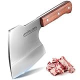- Multifunktionales Schwerlast-Knochenbeil: Dieses Hackbeil für Knochen ist auf beiden Seiten nutzbar: Die Rückseite dient als Schlagwerkzeug, ideal zum Zerschlagen harter Knochen, während die Vorderseite perfekt für das Schneiden von Fleisch, Schweinerippchen, Lammkoteletts, Rindfleischknochen, Hähnchen, tiefgefrorenen Lebensmitteln oder sogar zum Spalten von Holz geeignet ist. Mit einer tragbaren Lederscheide ist dieses Fleischermesser ein idealer Begleiter für Küche, Wandern, oder Camping