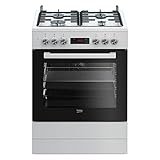 Beko Standherd mit Gaskochfeld 60cm Edelstahl elektro Backofen Grill Umluft Heißluft 3D Kochen Display freistehend eingestellt auf 20mBar NG/G Umrüstdüsen auf 30/50mBar LPG/G liegen bei