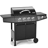 - Leistungsstarke Funktion: Gasgrill verfügt über vier leistungsstarke Edelstahlrohrbrenner (4 * 10000BTU/2,93 kW), die separat gezündet werden können und durch den einfach zu bedienenden Impulszündmethode leicht gezündet werden können und schnell die gewünschte Grilltemperatur erreichen.