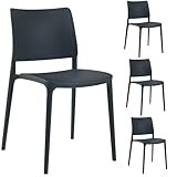 PAPATYA 4er Set Besucherstuhl - Gastro Stuhl für Café Restaurant Bistro Bar - Essstühle Küchenstühle Gartenstühle - Stapelstuhl aus Kunststoff wetterfest - belastbar bis 200 kg - Joy S, Anthrazitgrau