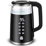 - TEMPERATURPRÄZISION: Als Wasserkocher mit Temperatureinstellung ermöglicht das Gerät die Auswahl zwischen 60, 70, 80, 90 und 100 °C. Die LED-Beleuchtung passt sich der gewählten Temperatur an und sorgt für eine intuitive Bedienung. Dadurch eignet sich der Wasserkocher hervorragend als Teekocher bzw. kleine Teemaschine, um unterschiedliche Teesorten optimal zuzubereiten.