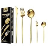 - PREMIUM EDELSTAHL: Dieses gold Besteckset ist aus hochwertigem, lebensmittelechtem Edelstahl gefertigt, der sehr langlebig, rostfrei und korrosionsbeständig ist. Seine Robustheit sorgt dafür, dass es sich nicht leicht verbiegt und Sie es lange nutzen können. Das Wichtigste: Sie sind spülmaschinenfest.