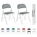 mcc direct Klappstuhl, Kunstleder Klappstuhl mit Metallrahmen und gepolstertem Sitz, einfach zu Falten und aufzubewahren für Zuhause, Büro, Esszimmer und Empfang 2er Set (Grau)