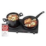 - Sichere Konstruktion – Die Camping Doppel Kochplatte besitzt ein Gehäuse mit hochhitzebeständiger Lackierung sowie eine Kontrollleuchte für die Temperatureinstellung
