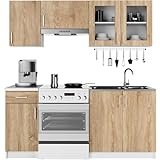 - Die Küchenschränke sind hochwertig verarbeitet und pflegeleicht. Das moderne Design in Weiss und Sonoma Eiche passt perfekt in jede kleine Küche.