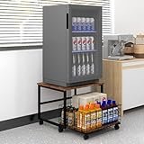 PUNCIA Kühlschrankständer auf Rollen Kühlschrankhalter mit Metallkorb Untergestell für Kühlschrank Sockel für Gefrierschrank Ausziehbarer Aufbewahrungskorb Küche Wohnzimmer Arbeitszimmer Büro Retro