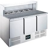 - ✅ Praktischer 3-Türer mit GN-Einlass Bietet Platz für 8x 1/6 GN-Behälter (max. Tiefe 150 mm) – ideal zum Kühlen von Zutaten direkt unter der Arbeitsfläche.