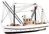 Gerkimex Boot aus Holz ca. 20 cm Antik-Design Weiss-hellblau Fischkutter Schiff