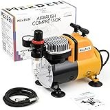 MEEDEN Airbrush Kompressor, 1/5 PS Einkolbenkompressor mit Auto Stop hermisch geschützt geringes Laufgeräusch 47 dB Regler Wasserfalle Halter 1/8 Luftschlauch für Modellbau, Tattoo & Graffiti