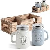 - Set mit Salzstreuer, Pfefferstreuer und Zahnstocherhalter aus erstklassigem rostfreien Edelstahl, Glas und festem Kunststoff hergestellt