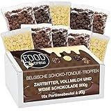 FOOD crew 900g belgische Schokolade für Fondue - Schoko-Mix aus Vollmilch, Zartbitter & Weiß - einzeln verpackt - belgische Schokolade für Schokobrunnen - Schoko Kuvertüre Drops