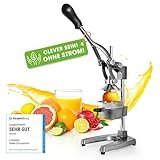 • MEHR SAFT - Über 20% mehr Saft als bei herkömmlichen Pressen: Durch die optimale Hebelwirkung und die neu entwickelte Hebelarm-Pressmechanik kann der Saft manuell ohne großen Kraftaufwand ausgepresst werden. 20 % mehr Saftgewinn als bei herkömmlichen Pressen, jede Frucht wird restlos leergepresst und liefert den maximalen Saftgewinn. So schmeckt das Glas Orangensaft fruchtig, frisch und unverfälscht.