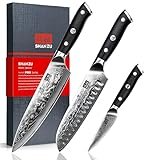 - 【Messerkern aus japanischem Stahl, superscharf】Der Kern des Kochmessers von SHAN ZU besteht aus japanischem Damaszenerstahl 10Cr15MoV, der eine hohe Härte (62HRC), Korrosionsbeständigkeit und Verschleißfestigkeit aufweist. In Kombination mit einer modernen Schmiedetechnik erhalten Sie ein superscharfes Küchenmesser.