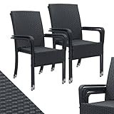- ✅ Hoher Komfort: Das elastische Polyrattan macht die Stühle besonders bequem - auch ohne Auflagen; für weitere Behaglichkeit sorgen die Armlehnen und die hohe Rückenlehne