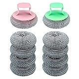 Stahlschwamm Topfreiniger 10 Stücke Topfreiniger Edelstahl Drahtwaschl, Stahlwolle, Schwamm Küche, Spülschwamm, Topfreiniger, Stahlwolle, Mit 2 Griff, für Reinigen Von Geschirr, Pfannen, SpüLen Usw