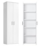 Mehrzweckschrank 75 cm breit mit 2 Türen & 6 Einlegeböden, Vielseitiger Haushaltsschrank für Vorräte, Putzmittel, Akten, Universalschrank für Haushalt, Flur, Büro, Keller, 75x35x184 cm (BxTxH), Weiß