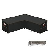 - Schutzhülle Winterfest für L Form Loung - Sechs untere Ecken sind mit Schnallengurt genäht, um den Sofabezug zu befestigen. Der Kordelzug an der Unterseite erleichtert es Ihnen, den Sofabezug weiter zu verriegeln. Es gibt zwei Schnallengurte an der linken und rechten Taille, um den Sofabezug fest am Sofa zu befestigen, und es gibt vier Lüftungsöffnungen, um Schimmel von den Gartenmöbeln effektiv zu verhindern und wirklich Wind- und Wasserbeständigkeit zu erzielen