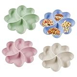 SJDOFU Herzförmige Snackteller, 4 Stück mit Fächern, für Nuss, Candy, Getrocknetes Obst und Essen zur Home-Party (Rosa, Gelb,Grün, Blau)