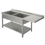 - Hochwertiger Edelstahl Spültisch mit zwei Becken – ideal als Gastro Spüle in Profi-Küchen der Gastronomie, Hotellerie, Imbiss oder Gemeinschaftsverpflegung.