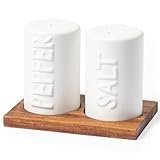 - ELEGANTES MEDITERRANES DESIGN - Unser Salz- und Pfefferstreuer-Set mit weißer Keramik und erhabenem "Salt" und "Pepper" Schriftzug verleiht Ihrem gedeckten Tisch eine zeitlose Eleganz im mediterranen Stil, die die Blicke auf sich zieht.