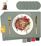 HELI MIAO Tischsets Abwaschbar,Platzsets Abwischbar, Leder,Hitzebeständig Doppelseitigen I 6er Set Platzdeckchen Lederoptik mit Untersetzer,Tischuntersetzer rutschfest,Salbeigrün