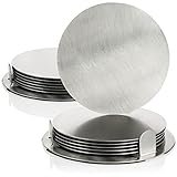 - LIEFERUMFANG: 12x Untersetzer, 2x Halterung // Maße Untersetzer: ca. 8,8 cm (Ø), Maße Halterung: ca. 10,3 cm (Ø) // Material: rostfreier Stahl, Moosgummi // Farbe: silberfarben, schwarz