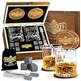- ✅ KOMPLETTES SET - Klassische Whiskey Karaffe 700ml - 2 Whisky Gläser x 310ml - 4 Whisky Steine - 2 Untersetzer - 1 Aufbewahrungsbeutel aus Samt - Zange - 1 luxuriöse Aufbewahrungsbox
